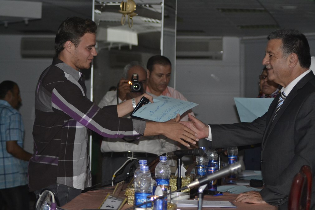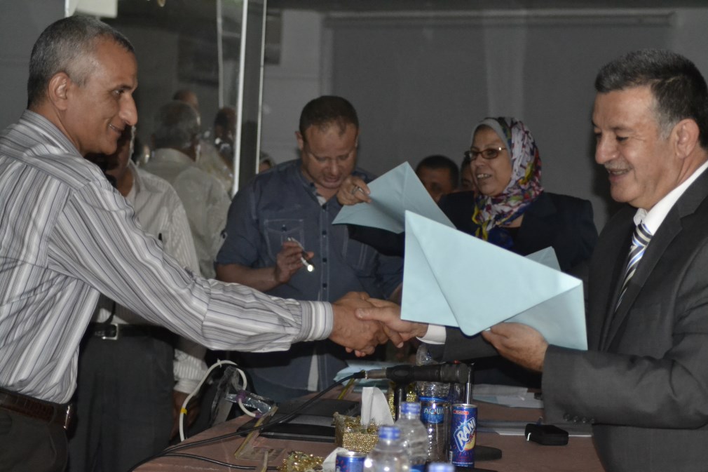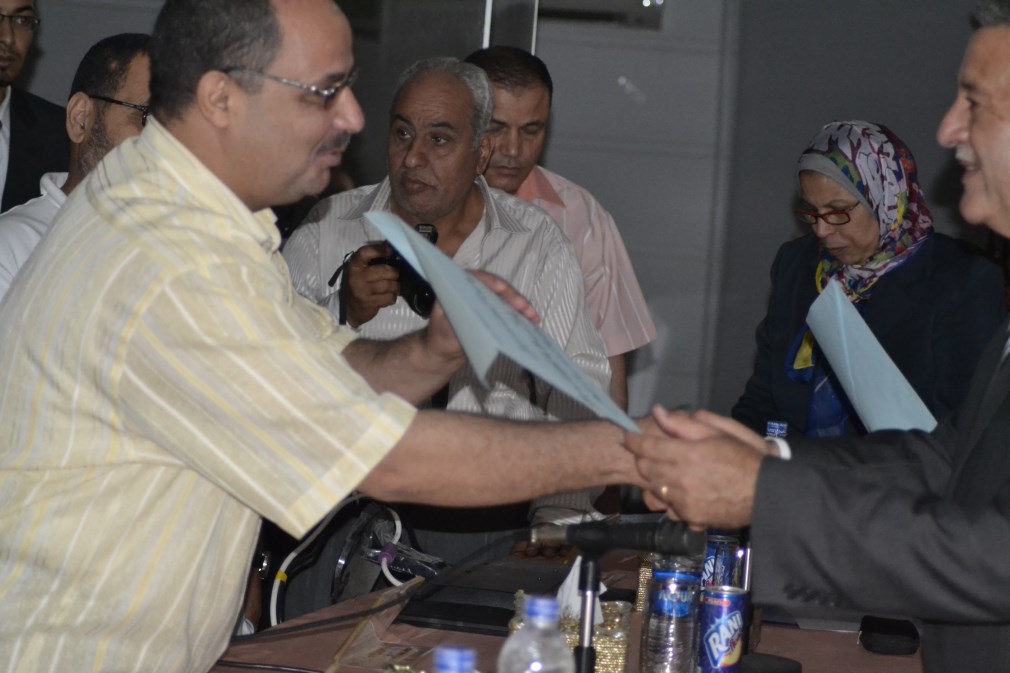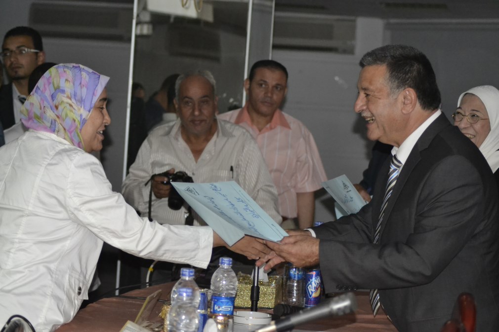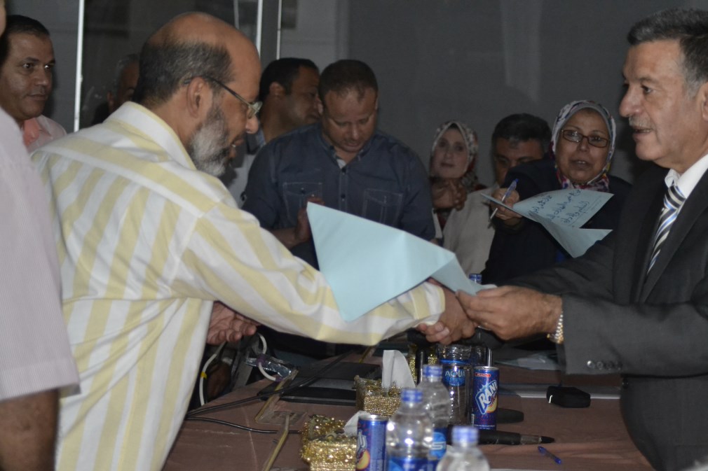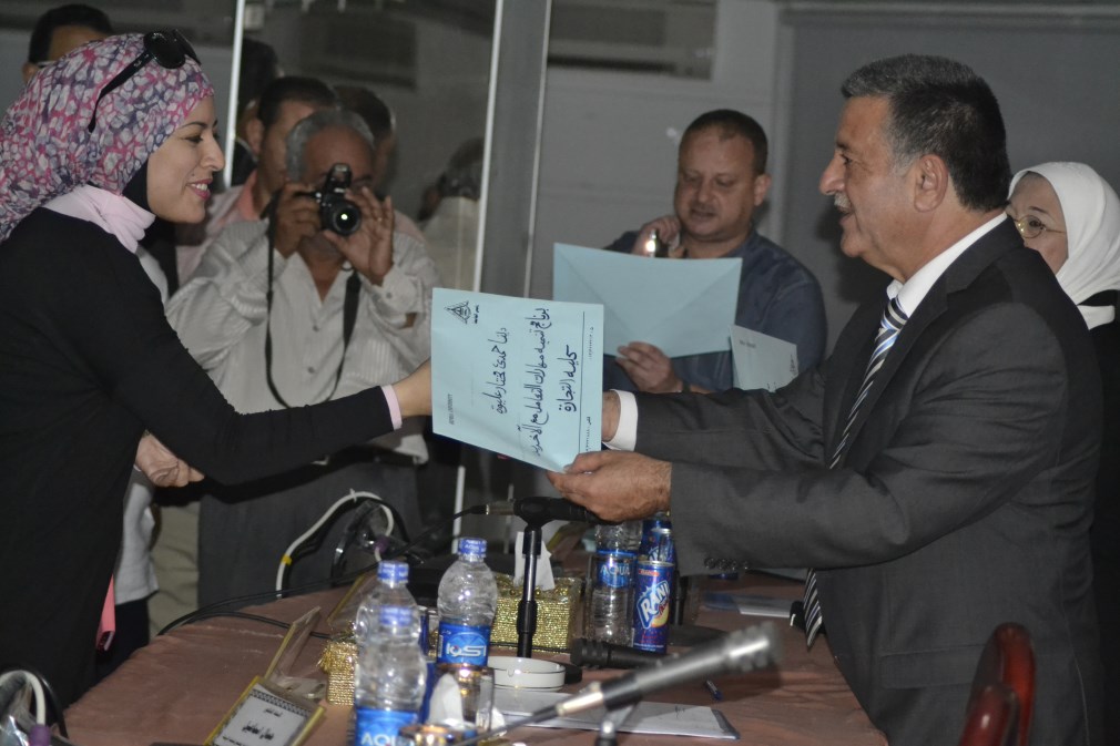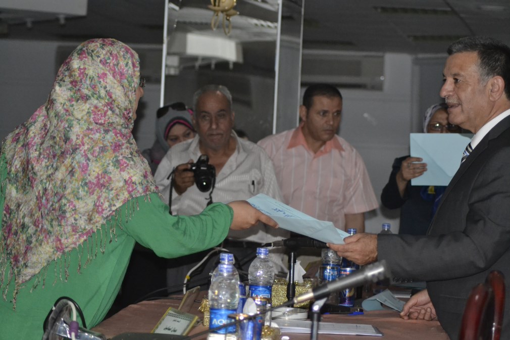 وفى نهاية الإحتفال قام الأستاذ الدكتور/ علي شمس الدين بتوزيع الشهادات على المتدربين من العاملين بالجامعة وتكريمهم.