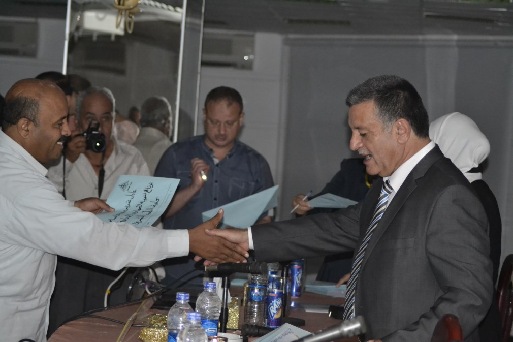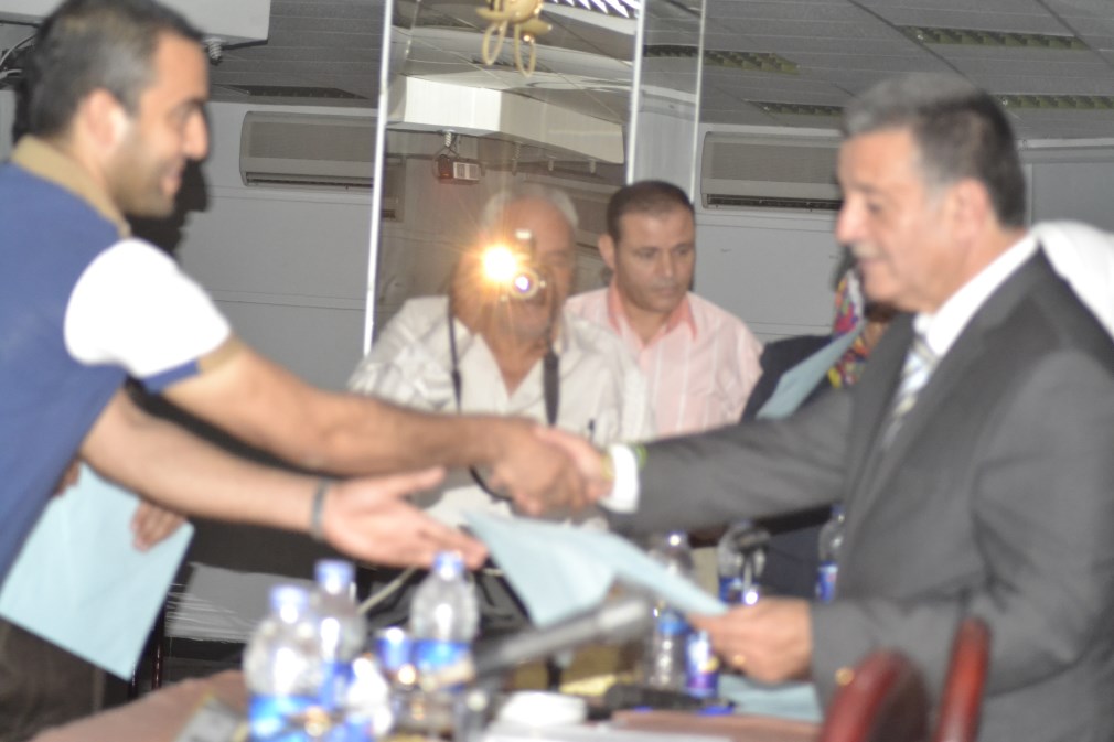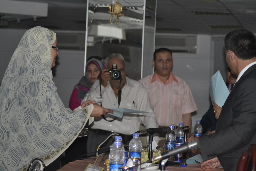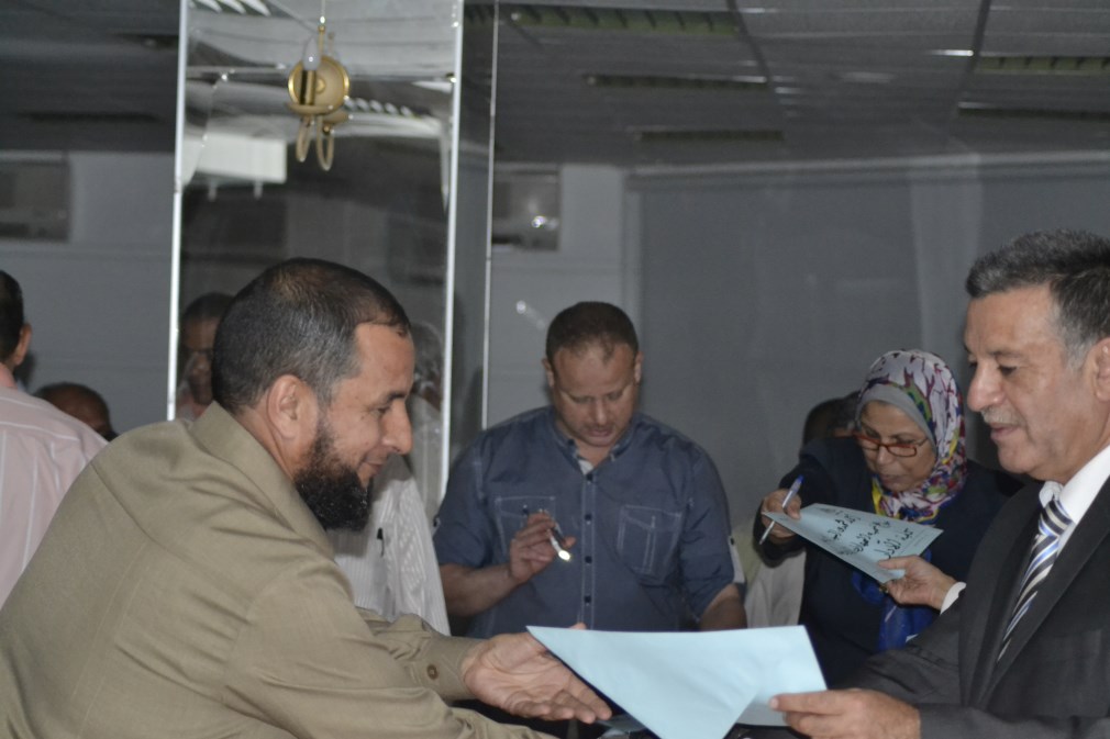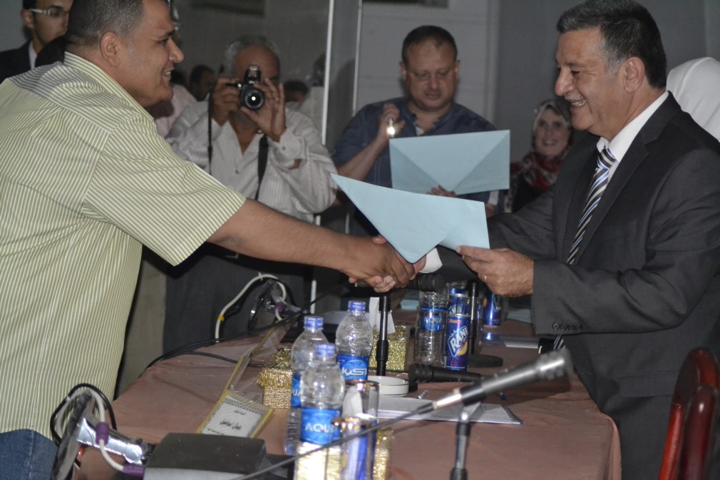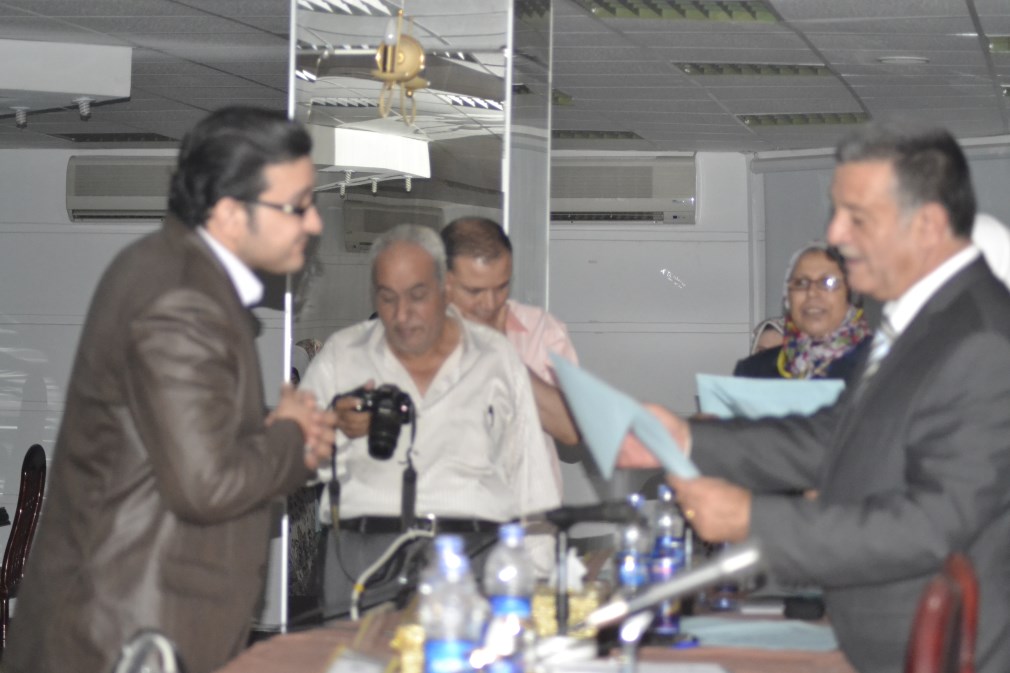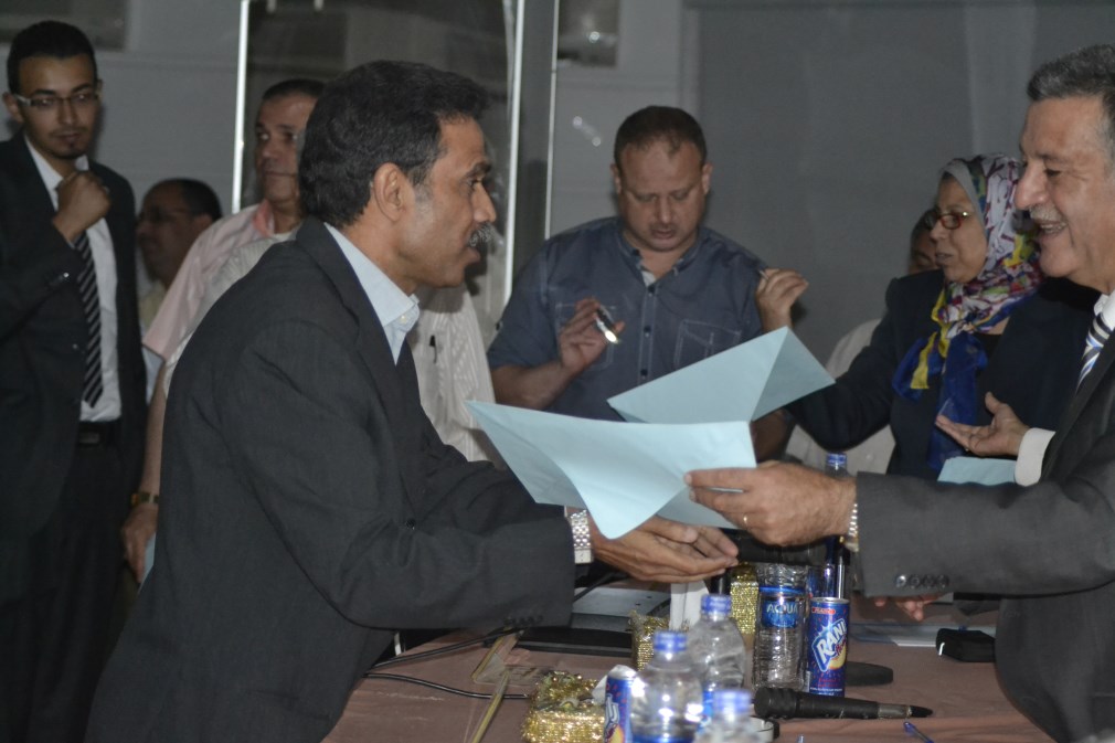 وفى نهاية الإحتفال قام الأستاذ الدكتور/ علي شمس الدين بتوزيع الشهادات على المتدربين من العاملين بالجامعة وتكريمهم.
