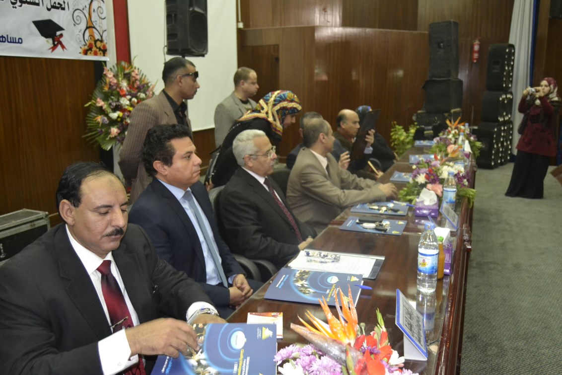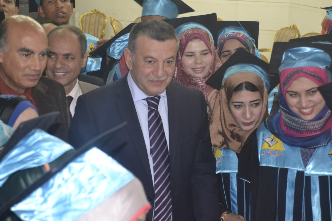 وأكد الأستاذ الدكتور/ على شمس الدين - رئيس الجامعة مدى إعتزازه الكبير لما تؤديه كل قيادات الكلية من جهود كبيرة وللأباء والأمهات لما بذلوه مع أبنائهم مشيرا أن التخرج يعتبر بداية للخريجين وليس النهاية متمنيا أن يراهم فى أفضل مكان ويتطلب ذلك ضرورة بناء الذات والثقافة العامة وحضور دورات تدريبية وأن يحاسب كل منا نفسه فبلدنا لم تعد تحتمل المزيد من الفرقة ولا أحد يقبل أن تعيش مصر على كرم الأشقاء مطالبا الخريجين بالإستمرار والتواجد مع أساتذة الكلية للإستفادة من خبراتهم العلمية المختلفة.