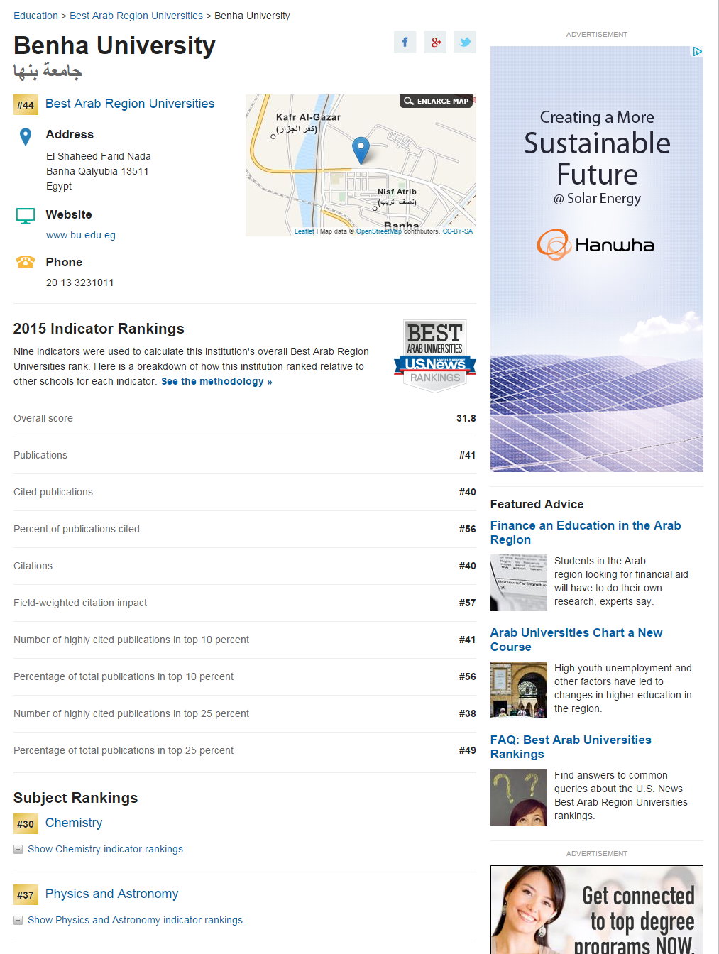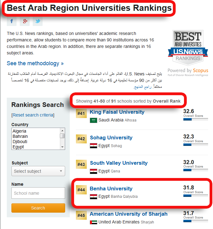 The first step in producing the overall rankings was to determine which of the 800-plus Arab region universities would be eligible to be included in the analysis. U.S. News worked with bibliometric experts at Elsevier to set the analytical time period for the rankings: papers published in the five-year period from 2009 through 2013. This time period was chosen since many Arab region universities have only recently begun emphasizing the importance of their faculty publishing in journals and engaging in research.