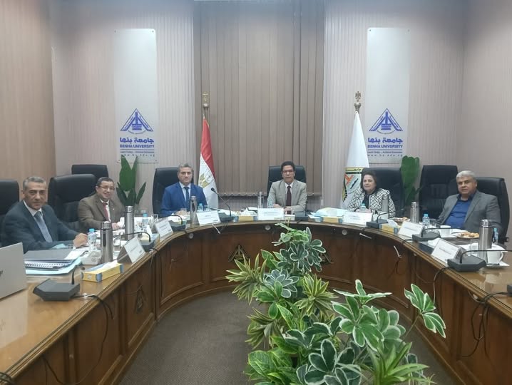 Prof. Nasser El-Gizawy, President of Benha University, chaired a meeting of the Digital Transformation Board, attended by Prof. El-Sayed Fouda, Vice President for Community Service and Environmental Development, Prof. Jehan Abdel-Hadi, Vice President for Postgraduate Studies and Research, and Prof. Shady El-Mashad, Executive Director of Information, along with other board members.
