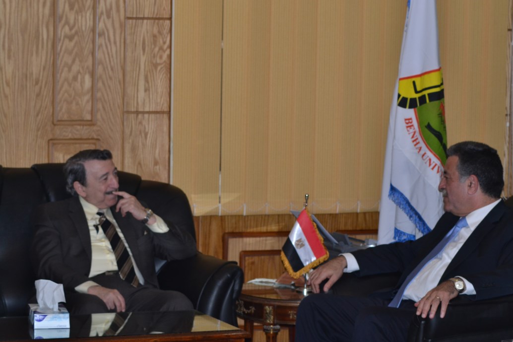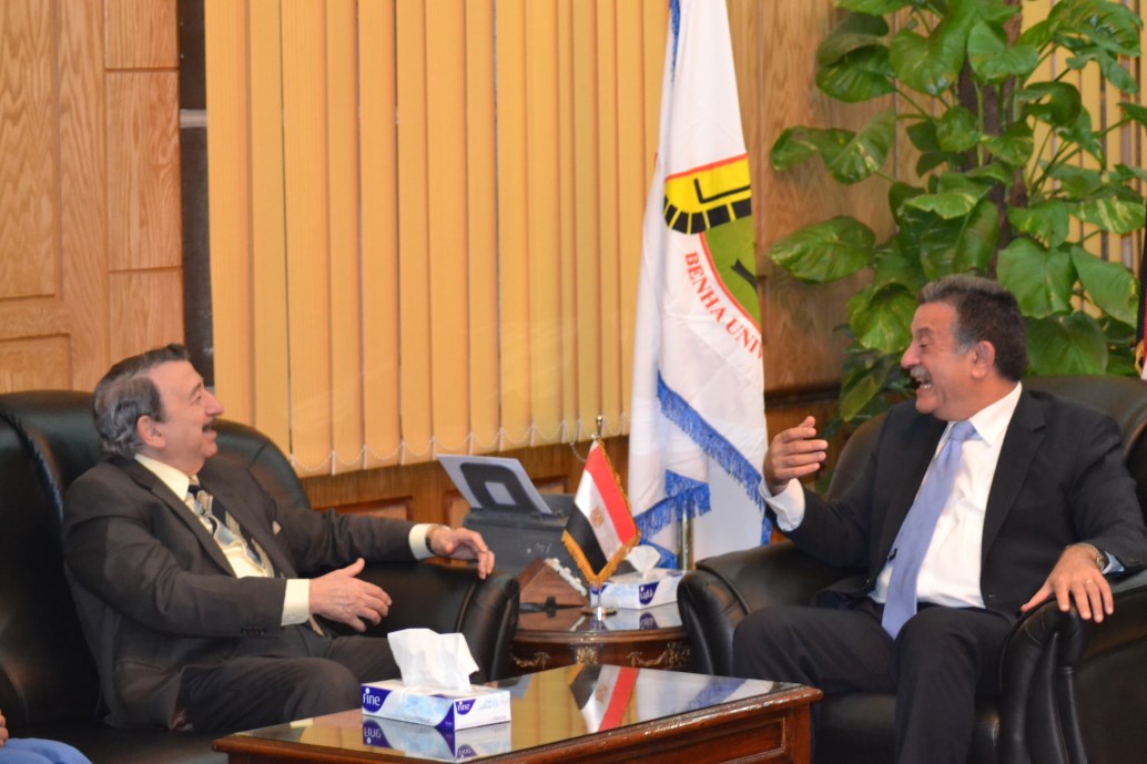 إستقبل السيد الأستاذ الدكتور/ على شمس الدين – رئيس جامعة بنها السيد الأستاذ الدكتور/ مصطفى السيد – الأستاذ بجامعة جورجيا بأمريكا، وقد حضر وفد يتكون من:
