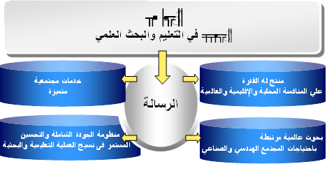 • تقديم خدمة تعليمية متميزة بعد دراسة احتياجات السوق المحلي والإقليمي والعالمي من الخريجين.