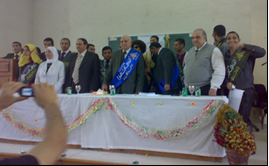 حفل تنصيب اتحاد الطلاب للعام 2008/2009م * أقامت كلية العلوم حفل تنصيب اتحاد الطلاب بحضور كل من الأستاذ الدكتور / مبروك كامل المنسي عميد الكلية و السادة وكلاء الكلية و رائد عام الشباب و مستشاري اللجان
