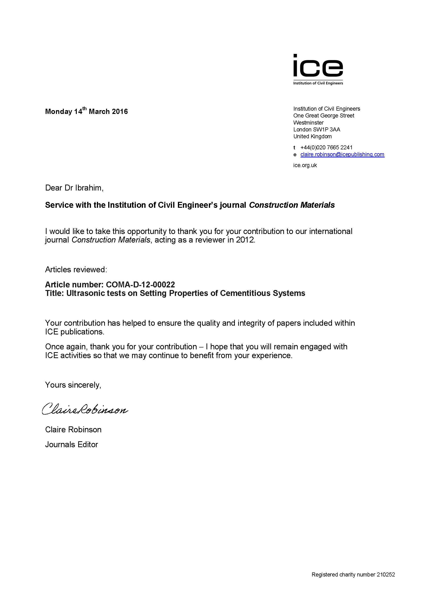 Institution of Civil Engineers Journals (ICE) (Construction Materials Referees 2012)