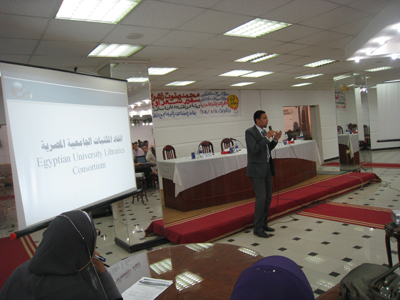 نظمت المكتبة الرقمية دورة تدريبية للسادة أعضاء هيئة التدريس والهيئة المعاونة وأخصائى المكتبات والمعلومات بجامعة بنها يوم الأحد 8-5-2011 ،وذلك من الساعة 10 صباحاً إلى 3 عصراً.