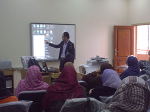 في إطار تطوير وجودة العملية التعليمية بكلية التمريض عقدت وحدة الجودة بكلية التمريض دورات تدريبية على السبورة الذكية يوم الأحد الموافق 2/1/2011 بقاعة المناقشات بالكلية بحضور أ.د/ سعد عبد الرحيم شولح عميد الكلية، وأ.د/ إيمان البيطار وكيل الكلية لشئون التعليم والطلاب، أ.د/ محمود عبد الصبور وكيل الكلية لشئون الدراسات العليا والبحوث، وبمشاركة أعضاء هيئة التدريس بالكلية وأشار عميد الكلية أن الهدف من هذه الدورات هو كيفية إستعمال أعضاء هيئة التدريس للسبورة الذكية، والتعرف على إمكانياتها كوسيلة شرح سريعة للمحاضر.