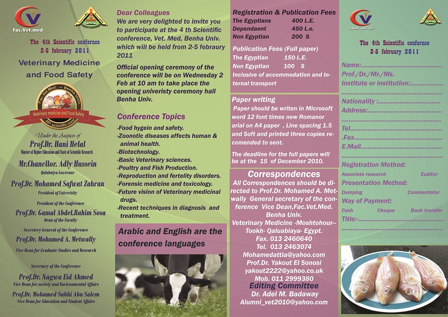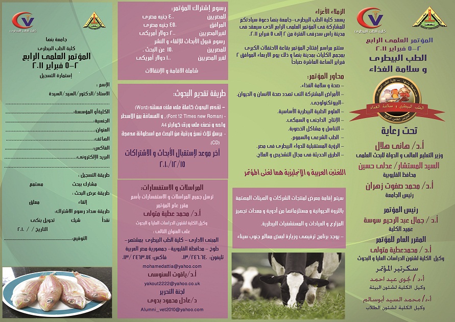 المؤتمر العلمي الرابع بكلية الطب البيطري من 2 إلي 5 فبراير 2011 بعنوان الطب البيطري وسلامة الغذاء